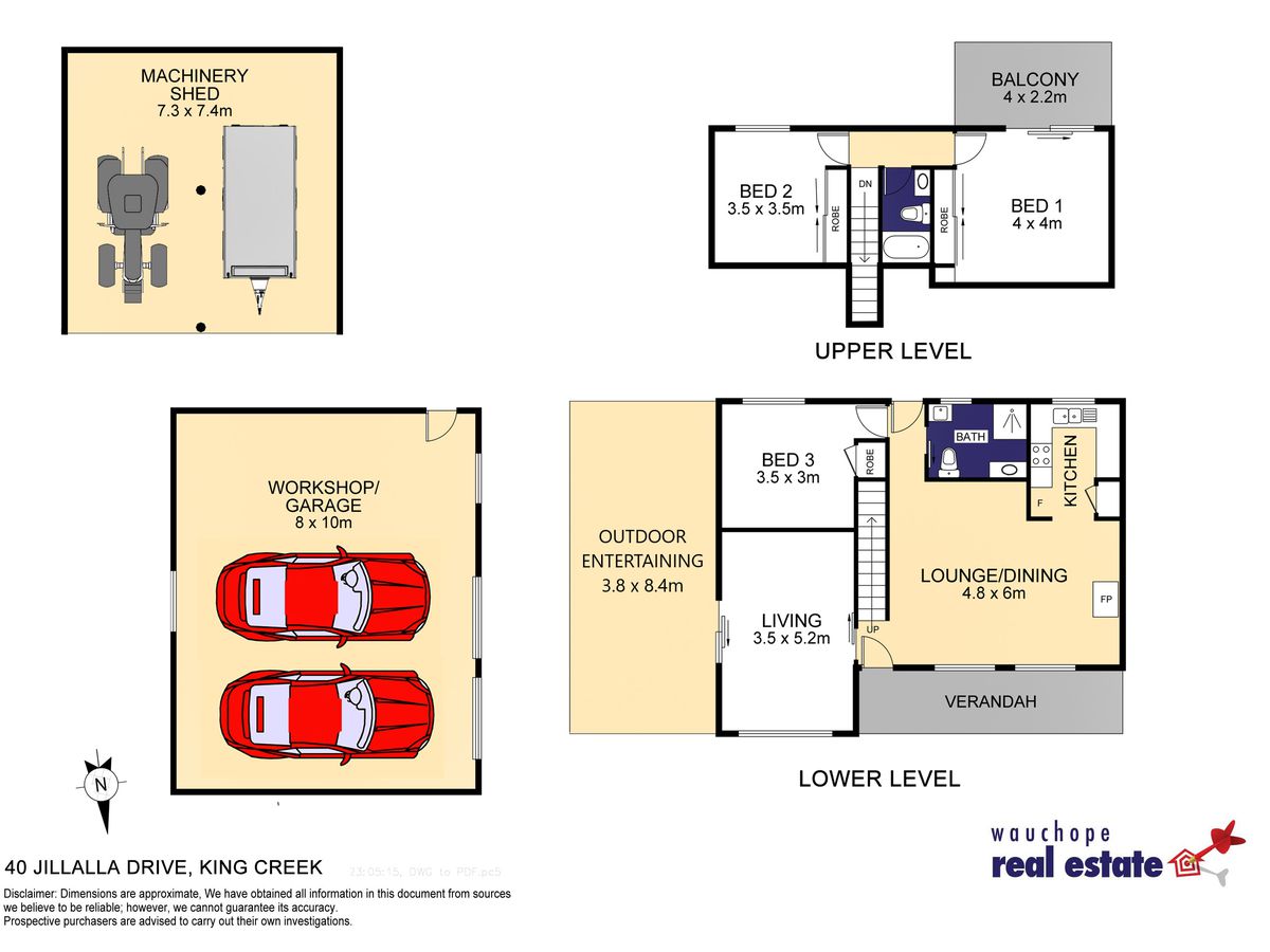 In addition to the home, the property features an 8m x 10m lockup shed with workshop space and a separate 7.3m x 7.4m machinery shed.