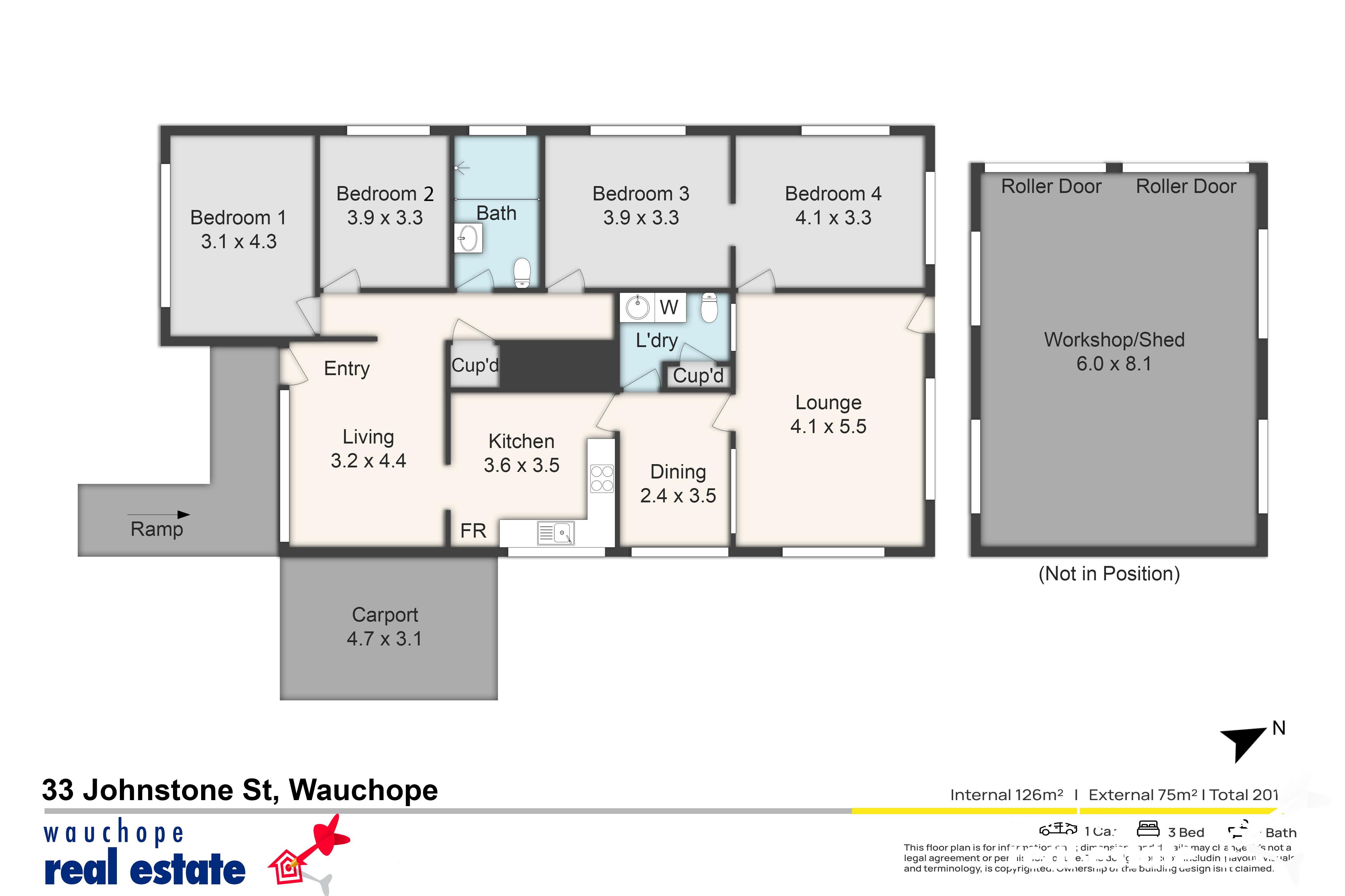 • Separate garage/shed + single carport
